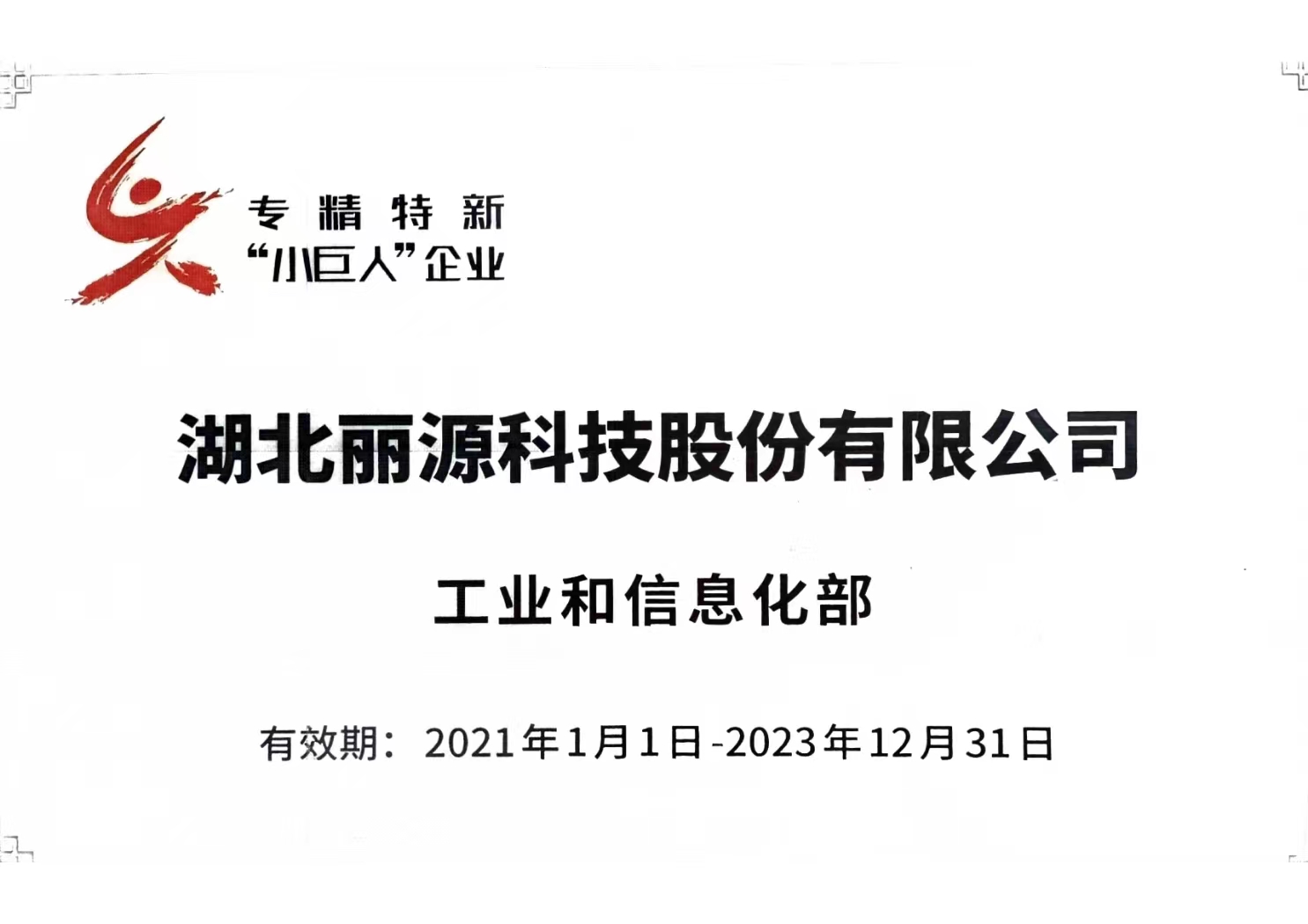 2021年1月,麗源科技被認(rèn)定為「國家級專精特新重點(diǎn)“小巨人”企業(yè)」